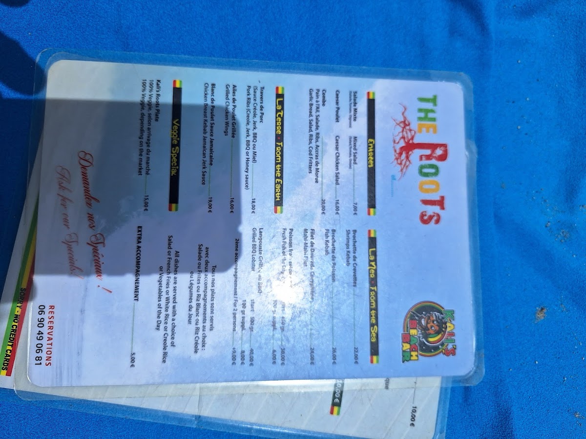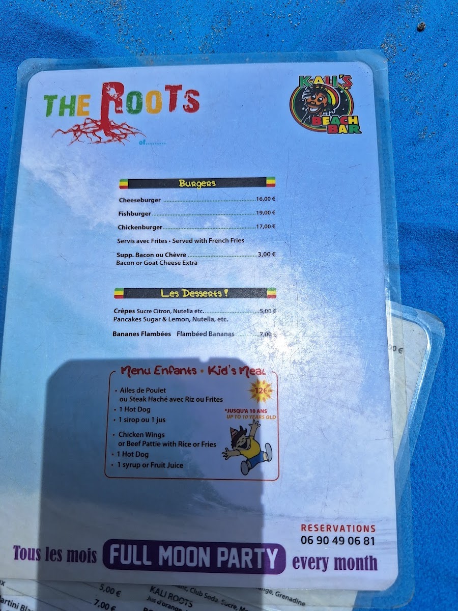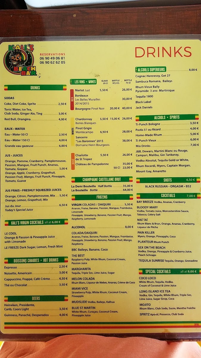 Kali's Bar Menu